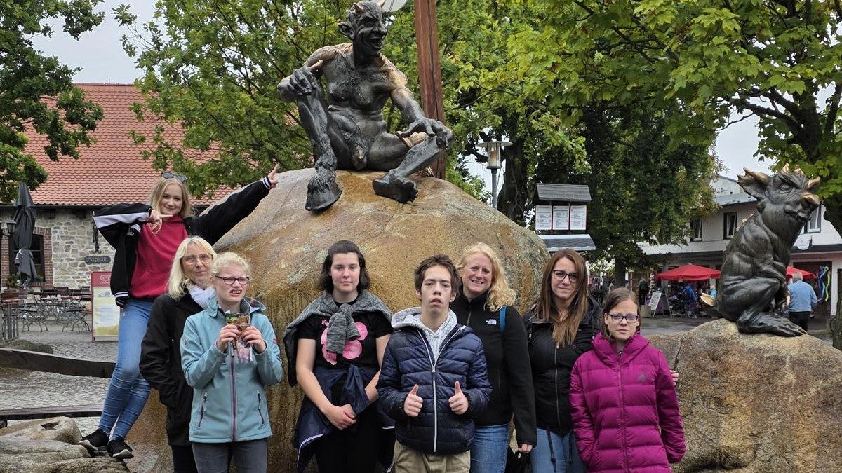 Am 15.09.2025 hat unsere Klasse einen Ausflug nach Thale zum Hexentanzplatz gemacht. Schon auf der Hinfahrt war die Vorfreude groß. Oben angekommen hatten wir einen tollen Blick über die Landschaft und die Stimmung war super.